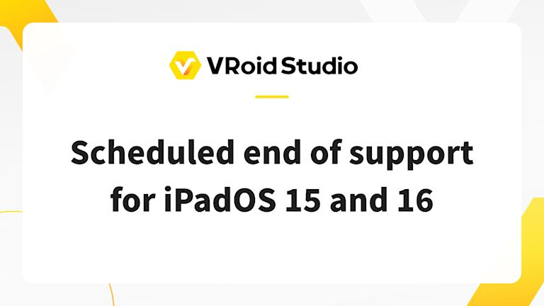 Please note that you will still be able to use the VRoid Studio app on iPadOS 15 or 16 after March 26th, 2026. However, we may not be able to provide support if issues occur, and you will no longer be able to update the app to the latest version. We appreciate your understanding.