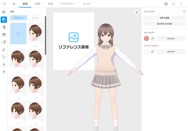 本機能により、VRoid Studioの制作画面上にキャラクターデザインが描かれたイラストや参考資料等の画像データを表示・参照しながらモデリングを行うことが可能になります。
